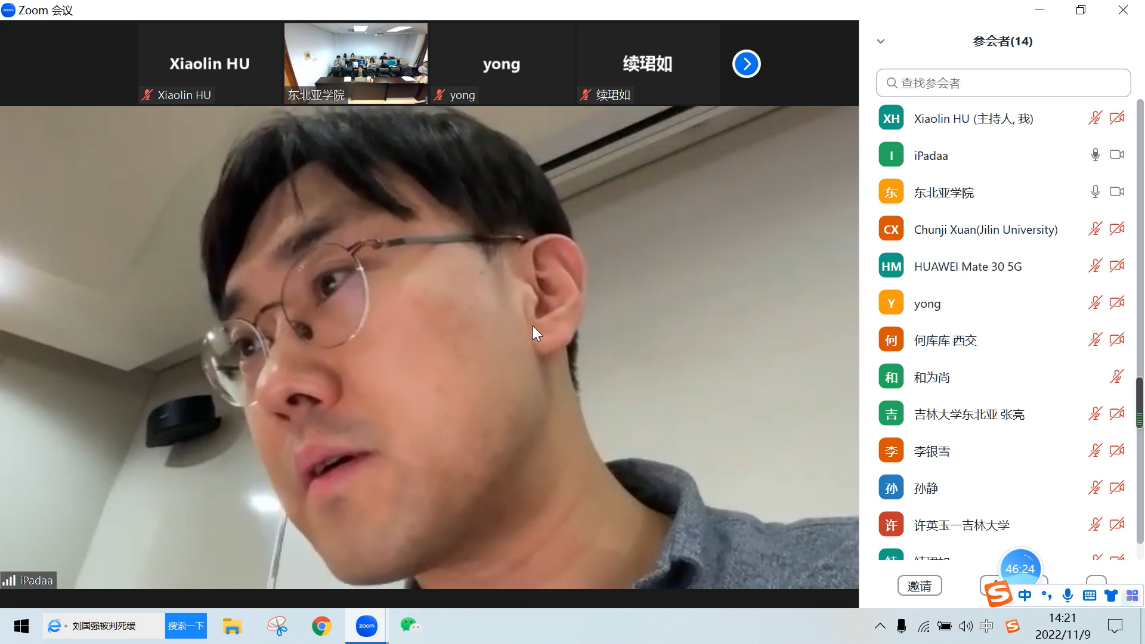 During the question and answer session, students who attended the lecture both online and in person actively asked questions. Professor Kim answered them with great care and had in-depth discussions with the participating students and teachers. At the end of the lecture, Prof. Xuan expressed her gratitude to Prof. Kim Do Wan, whose lecture and research series provided new research ideas for the students and teachers of the Northeast Asian Studies College of Jilin University. the students and teachers of the Northeast Asian Studies College of Jilin University. All participating students and teachers benefited greatly and are looking forward to Prof. Kim's next lecture.