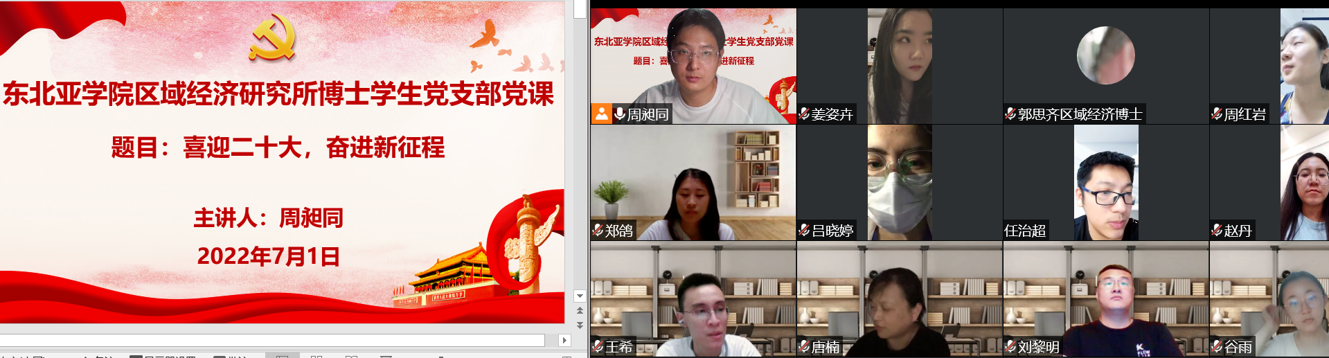 区域经济研究所博士学生党支部书记周昶同以“中国共产党历次全国代表大会回顾”为题讲党课,号召大家以青春之热血、青春之干劲,肩负起国家民族的希望,在中国共产党的领导下,与时代同心同向同行,不断前进。