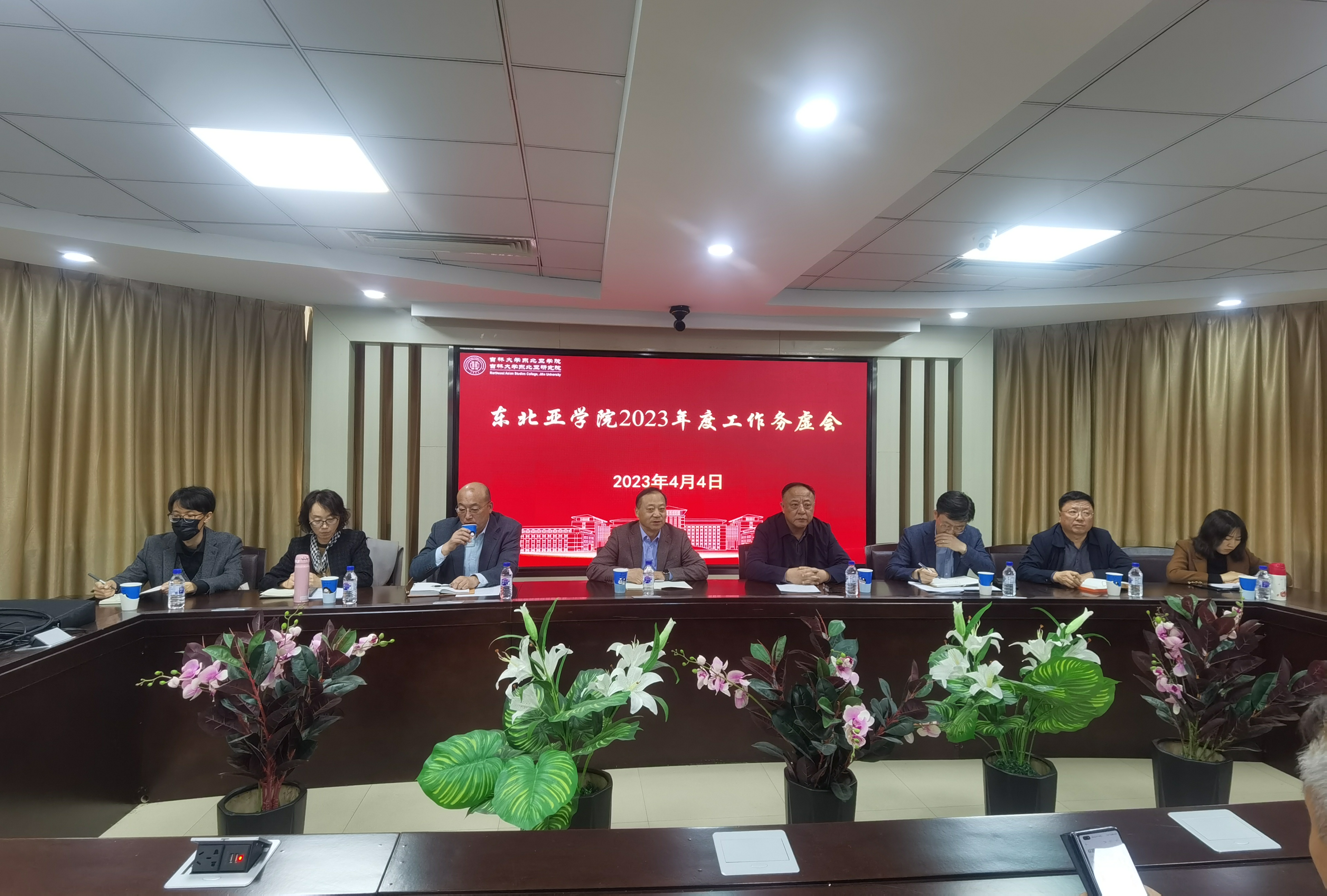 首先,院长吴昊从推进平台建设、学科建设、人才队伍建设,抓好科学研究工作、提升社会服务能力、完善人才培养体系、纵深推进国际合作与交流工作等方面总结了2022年学院取得的成绩,从学科融合发展、师资队伍建设、人才培养、推进有组织的科研工作、提升成果质量、打造会议品牌提升会议质量等方面分析了学院存在的问题,并提出了未来的工作思路。接下来,副院长王彦军以“聚焦东北亚区域国别研究和人才培养工作,支撑区域国别学科建设”为题,副院长崔健以“顺应区域国别学科建设需求,推动科学研究高质量发展”为题,副院长陈英姿以“立足学院新发展阶段,着力提升研究生人才培养质量”为题,结合各自分管领域依次发言。党委副书记赵毅博围绕研究生思政教育、廉政建设、校友工作等方面,副院长刘汉君从资产后勤、工会服务方面,东北亚研究院行政副主任马赫以“聚焦国别区域研究,推进优秀基地建设”为题,分别发言。