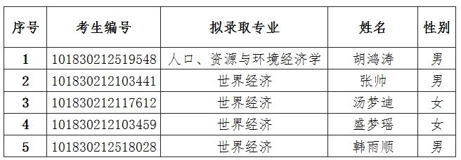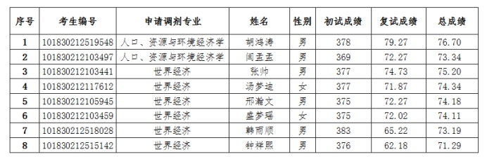 确定调剂拟录取名单(第二批拟录取)如下: