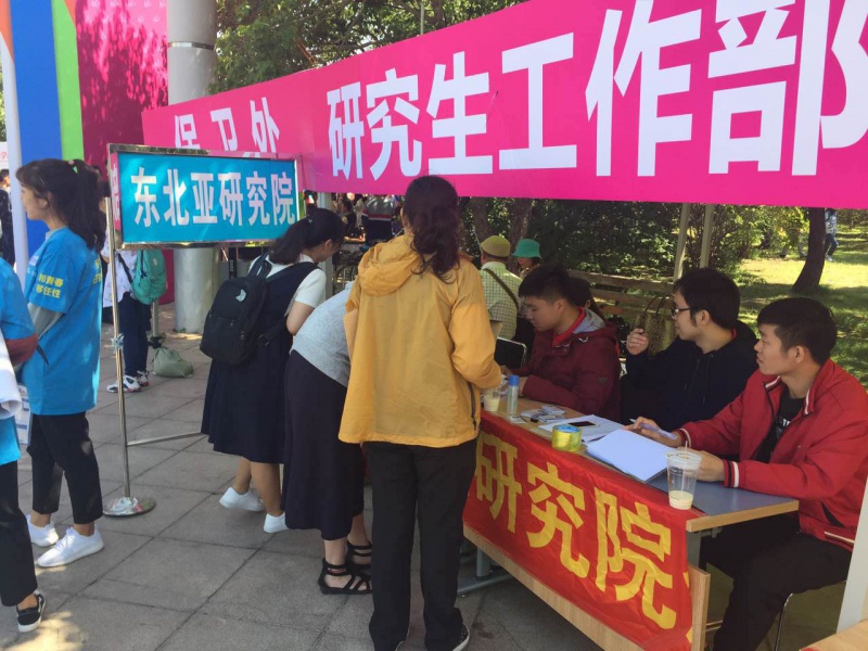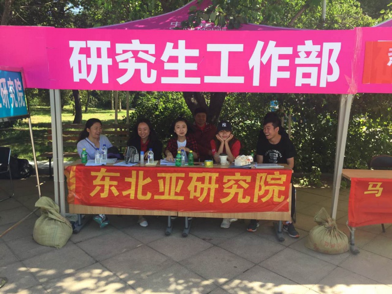 秋高气爽,金桂飘香,东北亚研究院2017年迎新工作也如期开展。经过24、25两日的充分准备,26日上午8:00,迎新全体工作人员在五月花广场研究生迎新地点集合完毕,饱含热情的欢迎每一位新生的到来。