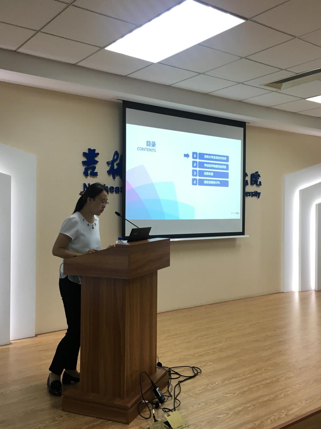 随后胡潇霖老师为我院硕士新生介绍了与东北亚研究院有往来的国外相关学校、可以申报留学的项目、对语言的要求等申报条件、留学资金的来源、查询留学信息的网站等等。她希望同学们在有限的时间中可以把握住机会,鼓励同学们多出国交流学习,体验国外多样的文化和风俗,丰富同学们的人生阅历。