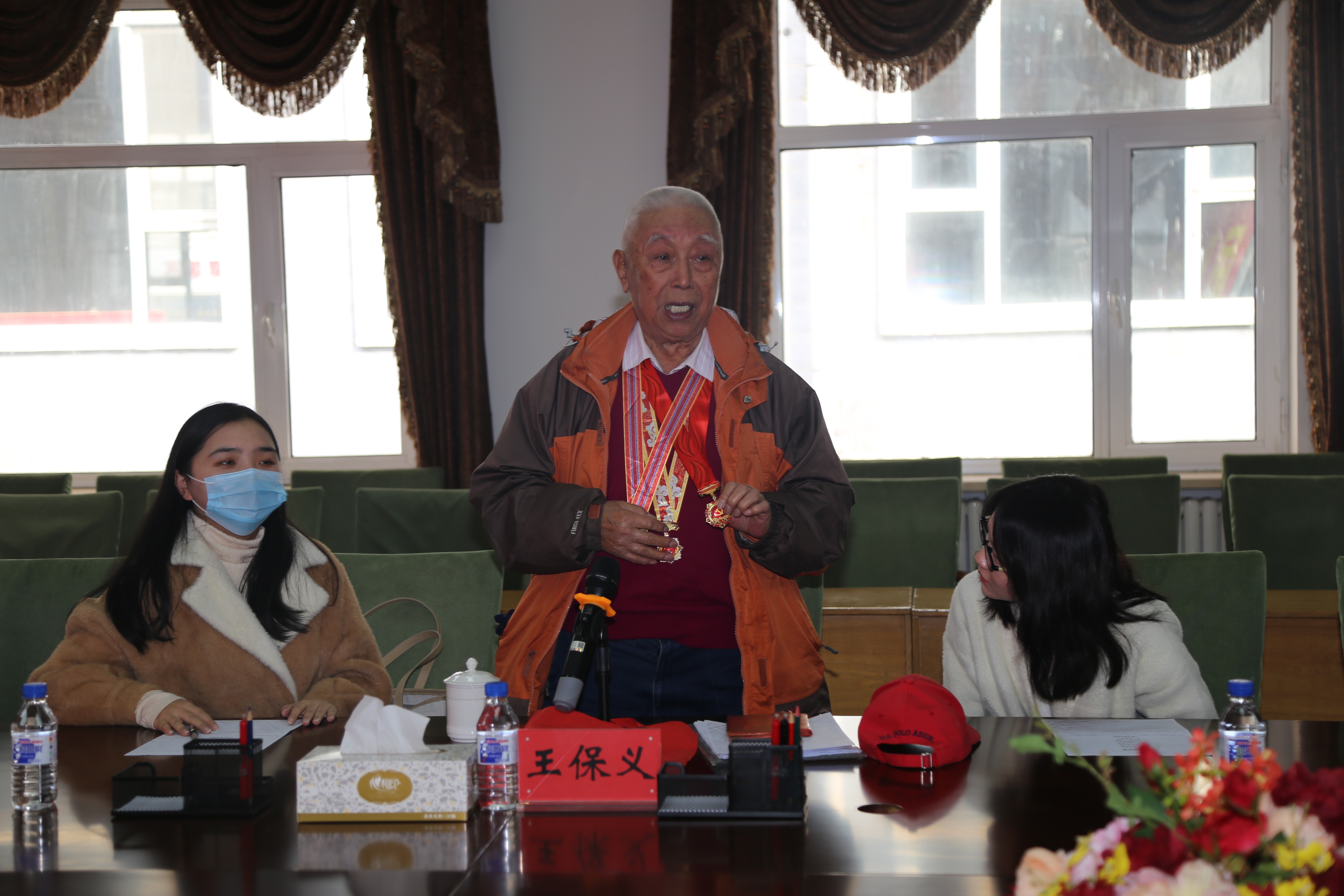 1931年出生的抗美援朝老首长王保义是原208医院传染科主任,他参加过抗美援朝、辽沈战役、平津战役。获得过军委二等功、三等功、国务院特殊津贴等荣誉。虽然老首长已年过耄耋,步履略有蹒跚,但仍精神矍铄。老首长不仅与同学们分享了自己饱经沧桑的经历,还讲述了他是怎样戒骄戒躁,思想进步的过程。