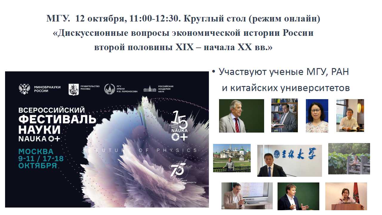 2020年10月12日下午,第十五届全俄学术节(莫斯科)框架下的首场圆桌论坛“19世纪下半叶-20世纪初俄国经济史研究中的争议问题”在莫斯科大学隆重召开。来自莫斯科国立大学、俄罗斯科学院、中国四所高校和科研机构的近百名专家学者、学生齐聚云端。本次活动由莫斯科大学主办,海角视频