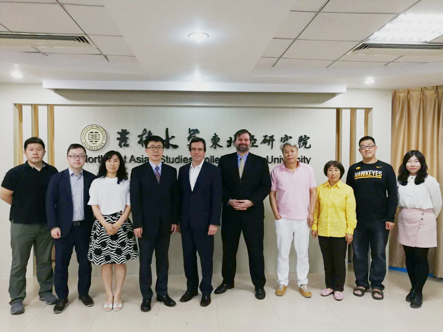 2018年6月14日,美国传统基金会(The Heritage Foundation)亚洲研究中心主任沃尔特·洛曼(WalterLonman)一行访问东北亚研究院,并与我院部分教师进行座谈。王彦军副院长主持了座谈会,朝鲜韩国研究所所长张慧智教授、国际政治所所长巴殿君教授、朴英爱教授、徐博副教授、王箫轲副教授等人参加了座谈。