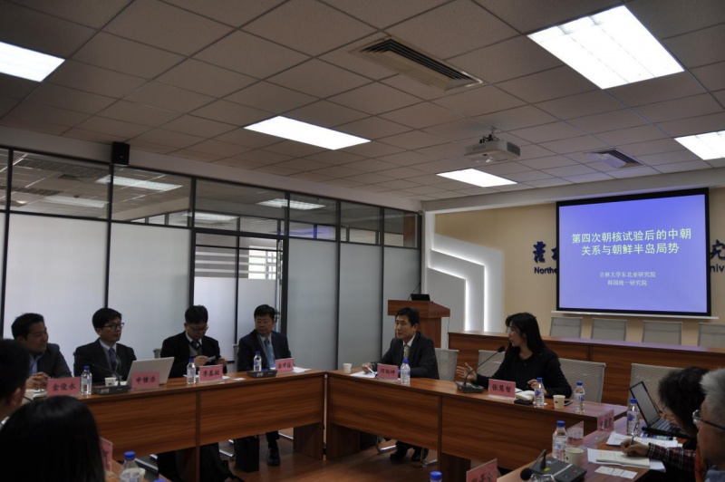 2016年4月14日下午,韩国统一部统一研究院田炳坤研究员一行四人到访我院,并与世界经济所、国际政治所部分教师举行了主题为“第四次朝核试验后的中朝关系与朝鲜半岛局势”研讨会,会议由东北亚研究院副院长张慧智教授和韩国统一研究院战略研究室室长田炳坤主持。