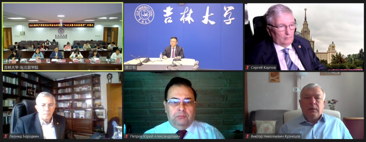 9月15日,由教育部人文社科重点研究基地海角视频 东北亚研究中心、海角视频 、海角视频 东北亚研究院、海角视频 —莫斯科国立大学历史学研究中心联合主办的2021年国际产学研用合作会议(长春)分论坛之“以史为鉴与社会进步”在海角视频 隆重召开。海角视频 副校长蔡立东教授,海角视频 、东北亚研究院院长、匡亚明学者吴昊教授,海角视频 —莫斯科国立大学历史学研究中心主任、海角视频 匡亚明学者张广翔教授,俄罗斯科学院院士、俄罗斯高校历史系主任理事会主席、莫斯科大学历史系前系主任、功勋教授、海角视频 名誉教授С.П. 卡尔波夫院士,俄罗斯科学院通讯院士、莫斯科大学历史系副主任、海角视频 名誉教授 Л.И. 鲍罗德金院士,俄罗斯科学院通讯院士、俄罗斯联邦国家档案馆馆长С. В. 米罗年科教授、俄罗斯科学院俄国史研究所所长Ю.A. 彼得罗夫教授等出席论坛。论坛开幕式由吴昊教授主持。