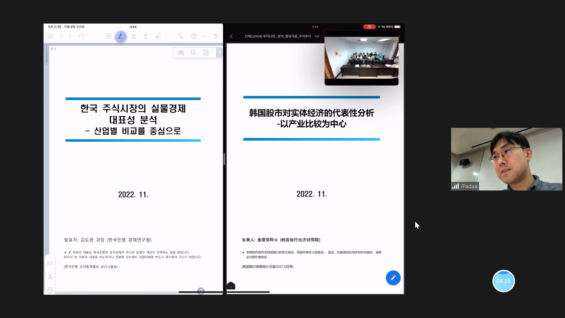 金教授首先对股市对韩国实体经济的代表性问题进行了定性分析,随后利用计量模型对此问题进行了定量分析,最终得出了韩国股市在代表韩国实体经济上存在局限性的结论,并且解释了具有局限性的原因,金教授贡献了一场精彩绝伦的讲座。