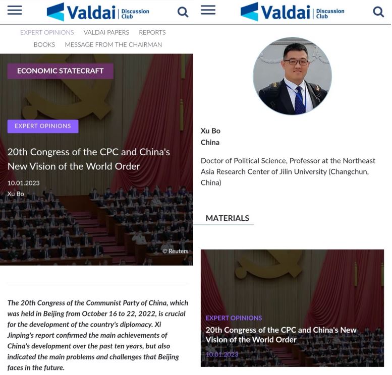 徐博教授在俄罗斯顶级智库“瓦尔代俱乐部”官网发表宣传二十大精神的文章