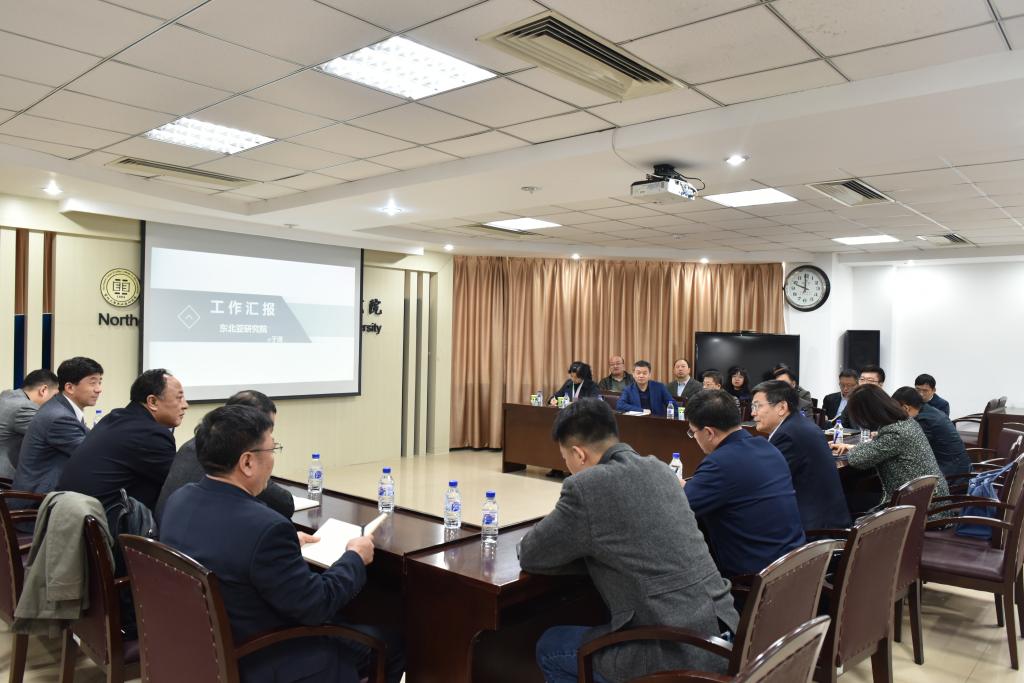 副校长郑伟涛教授到东北亚研究院调研并指导工作,发展规划处、社会科学处、人力资源与社会保障处、人才工作办公室、国际合作与交流处的部分领导随同调研,东北亚研究院领导班子全体成员、各研究所所长、部分学术带头人参加了调研座谈会。