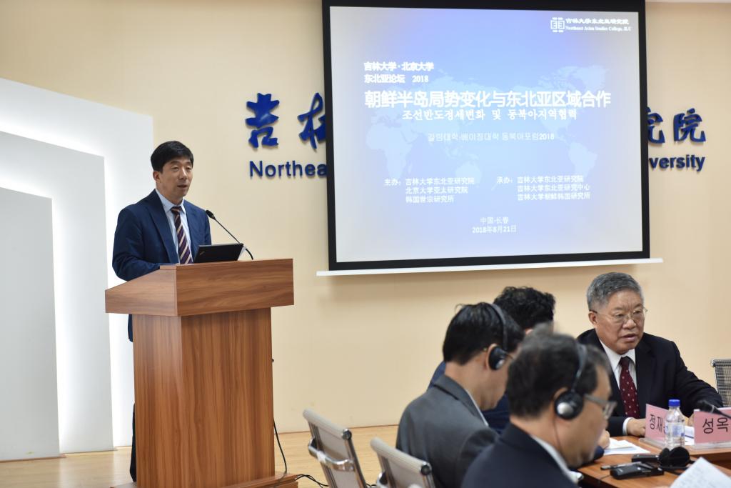 、北京大学、中国社科院、韩国世宗研究所、韩国外交部等单位的30余名学者参加了论坛。会议就朝鲜半岛无核化、朝韩关系、中朝关系、中韩关系、东北亚区域经济合作等议题进行了发表和讨论。此次“吉大·北大东北亚论坛”是2009年吉大东北亚研究院和北大亚太研究院签署合作协议以来成功举行的第九次学术研讨会,会议首次邀请韩国著名智库世宗研究所参加,为论坛增加了新的活力,进一步扩大了我院在东北亚研究和学术交流方面的影响力。