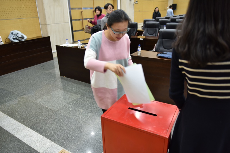 述职过程结束后,与会教职工和学生代表自主自愿、本着民主、真实、客观的态度填写了《述职测评票》和《民主推荐票》。