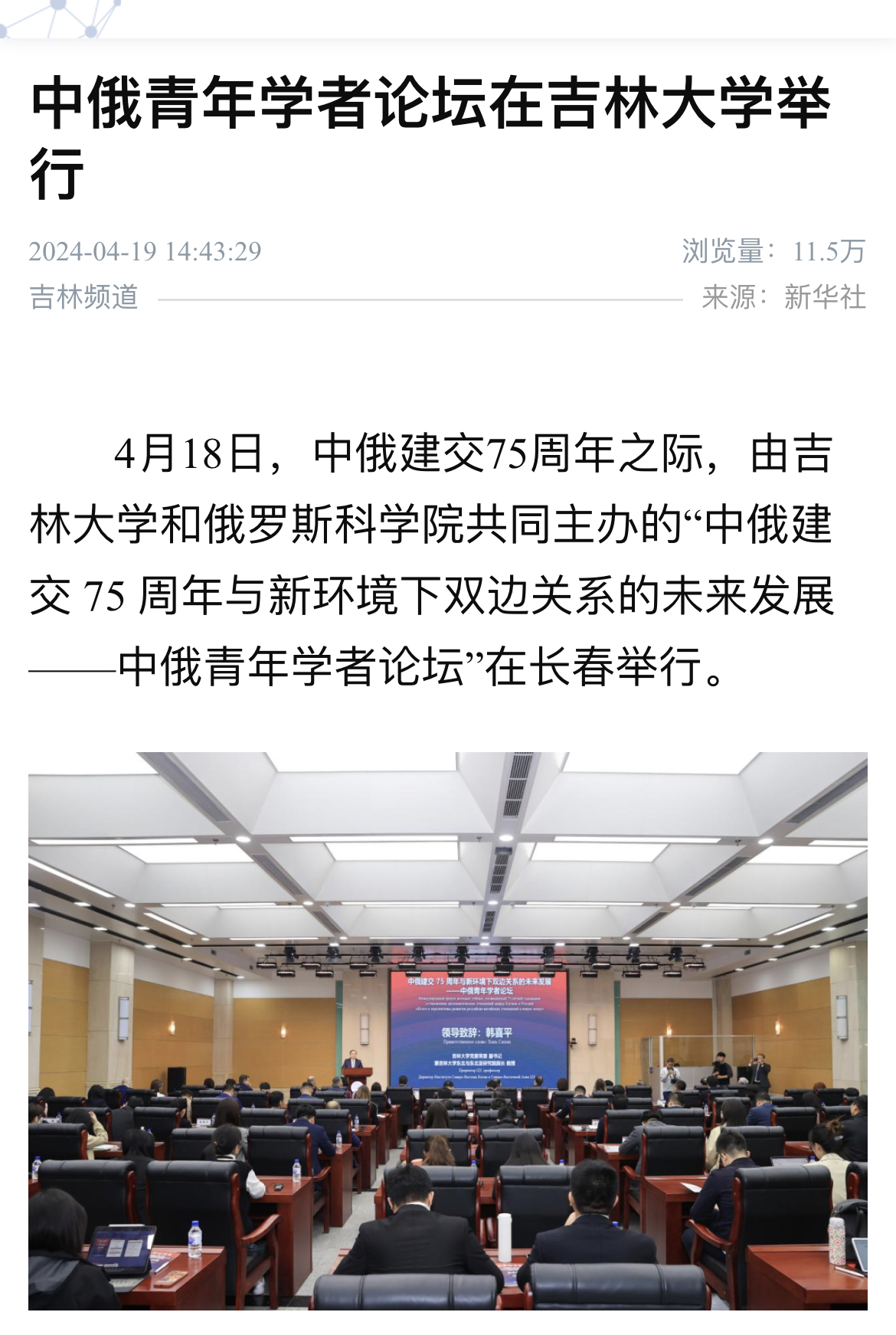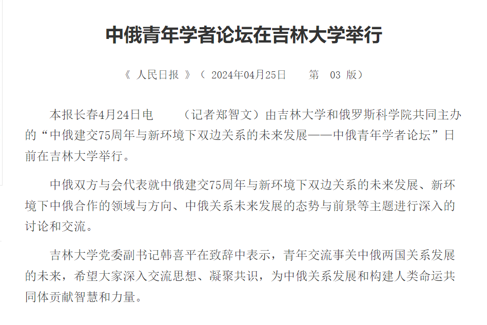4月18日,中俄建交75周年之际,由海角视频 东北与东北亚研究院、东北亚研究中心,海角视频 、东北亚研究院,俄罗斯科学院中国与现代亚洲研究所主办,《东北亚论坛》编辑部协办的“中俄建交 75 周年与新环境下双边关系的未来发展——中俄青年学者论坛”在海角视频 举行。