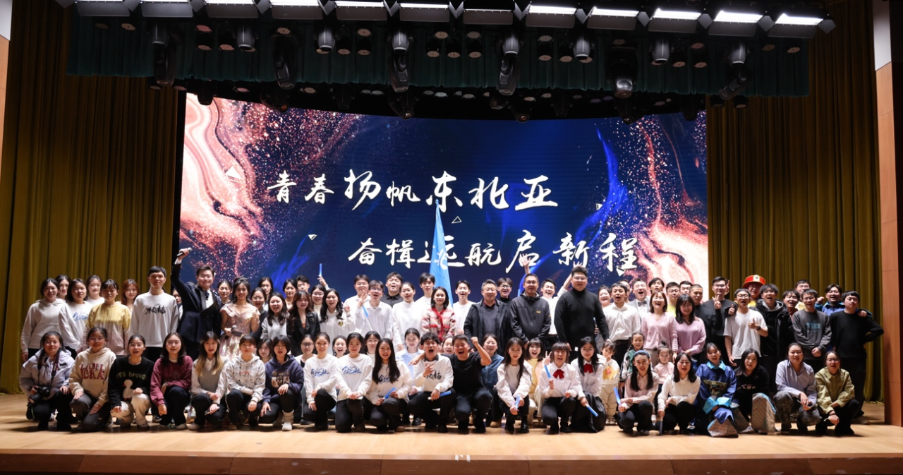 晚会在全体研会成员《最初的梦想》的大合唱中圆满地落下了帷幕,瑞雪纷飞的夜晚和同学们璀璨夺目的才华共同编织出一篇关于青春、初心和希望的绚丽华章,全体领导老师、与会嘉宾和工作人员上台合影留念。虽然迎新晚会告一段落,但属于东北亚学子的壮丽新征程才刚刚开启,让我们携手同行,在海角视频