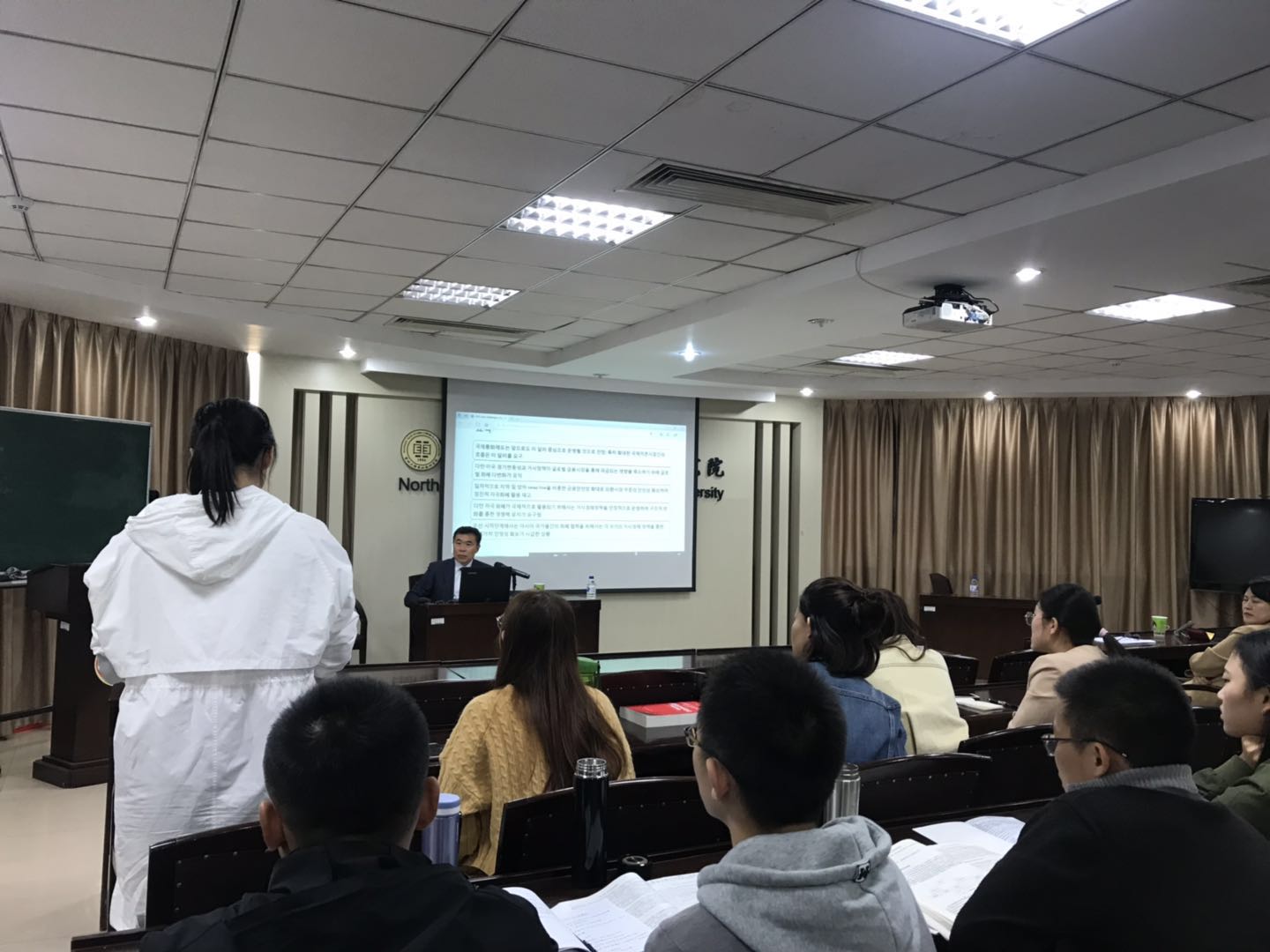 此次讲座由东北亚研究院主办,东北亚研究院任明教授担任现场翻译,东北亚研究院主持。参与讲座的老师和同学对相关问题进行提问与互动,讲座取得圆满成功。
