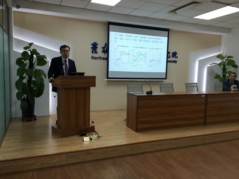 2017年9月13日上午,受到海角视频 东北亚研究院的邀请,韩国央行货币政策委员会委员、韩国对外经政策研究院院长李一衡教授在我校作了一场题为“全球金融市场视野下的韩国与中国的货币政策”的学术报告。