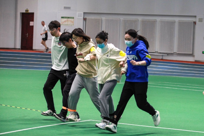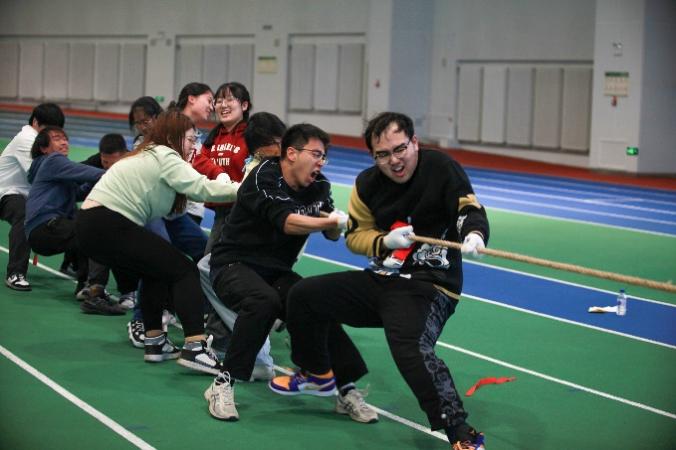 活动共分为“拔河对抗赛”、“一圈到底”、“绑腿赛跑”、“群雄逐鹿”、“袋鼠跳跳”和“撕名牌大战”六个项目。“拔河对抗赛”以班级为单位进行组队,并逐出冠亚季军,各班默契十足、齐心协力。