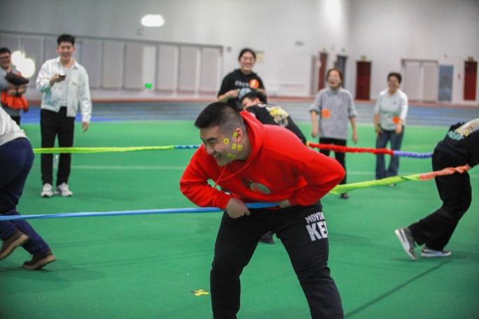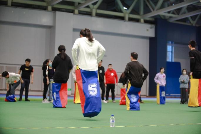 在“一圈到底”、“绑腿赛跑”、“群雄逐鹿”、“袋鼠跳跳”四个趣味项目中,各队奋力拼搏、奇招迭出,比赛精彩纷呈,现场一片欢声笑语。